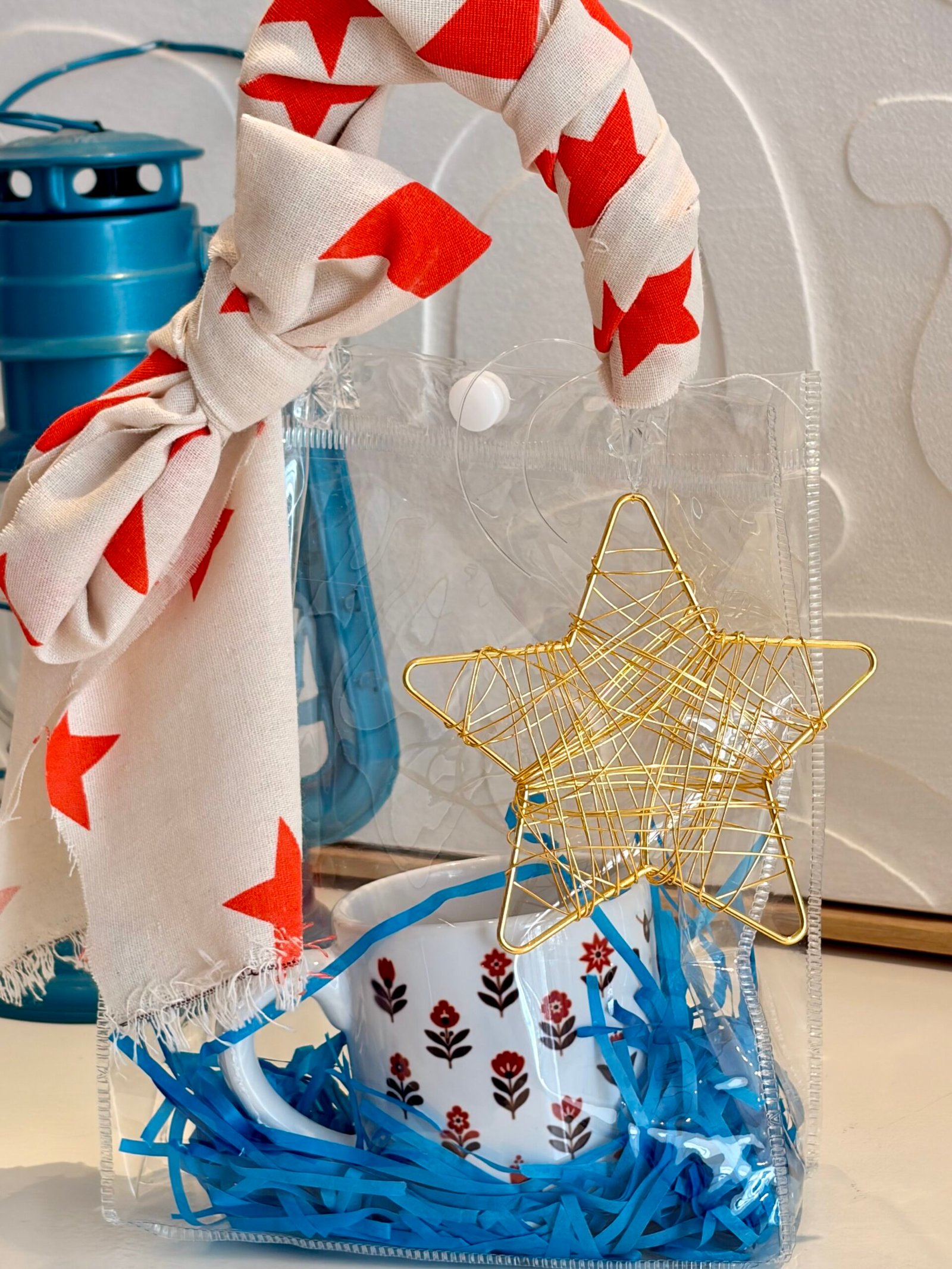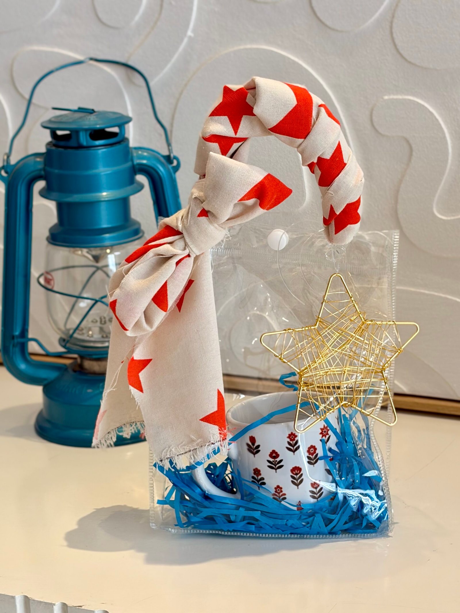 كوب بتصميم شعبي بداخل كيس شفاف