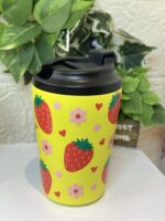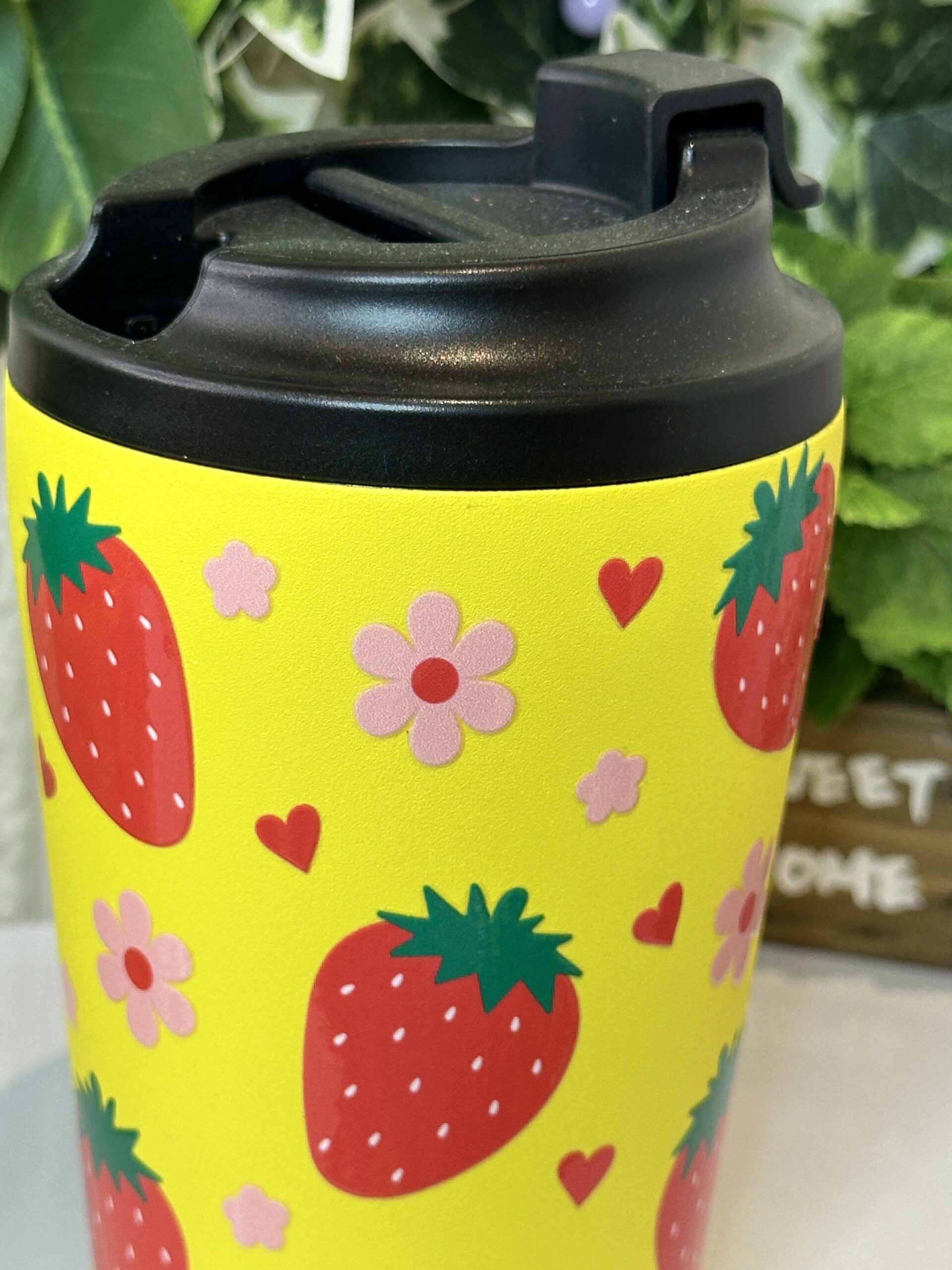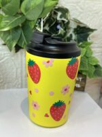 كوب حافظ للحراره والبرودة لون اصفر عليه ملصقات UV DTF مقاوم للماء والخدش