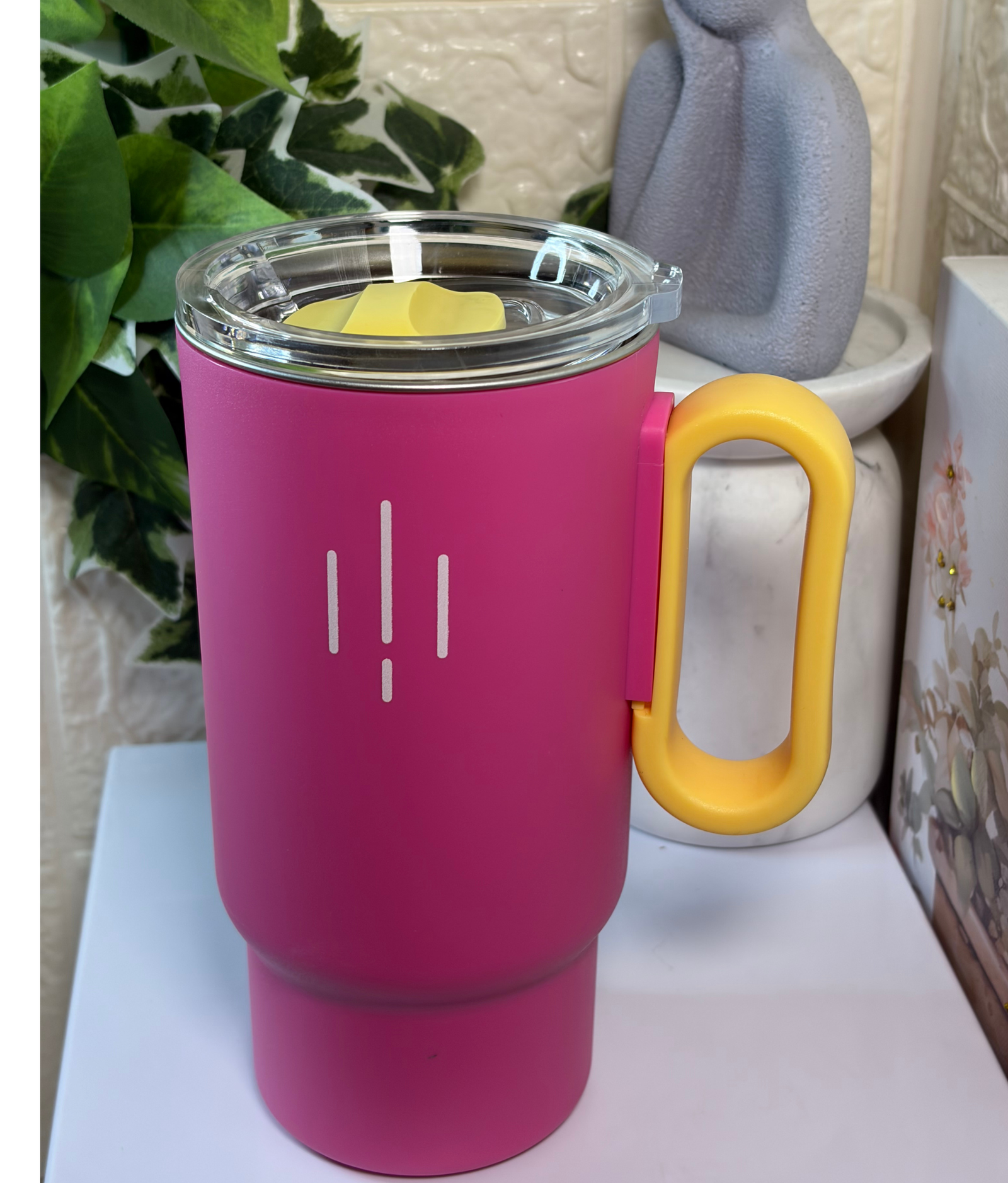كوب حافظ للحراره والبرودة لون وردي
