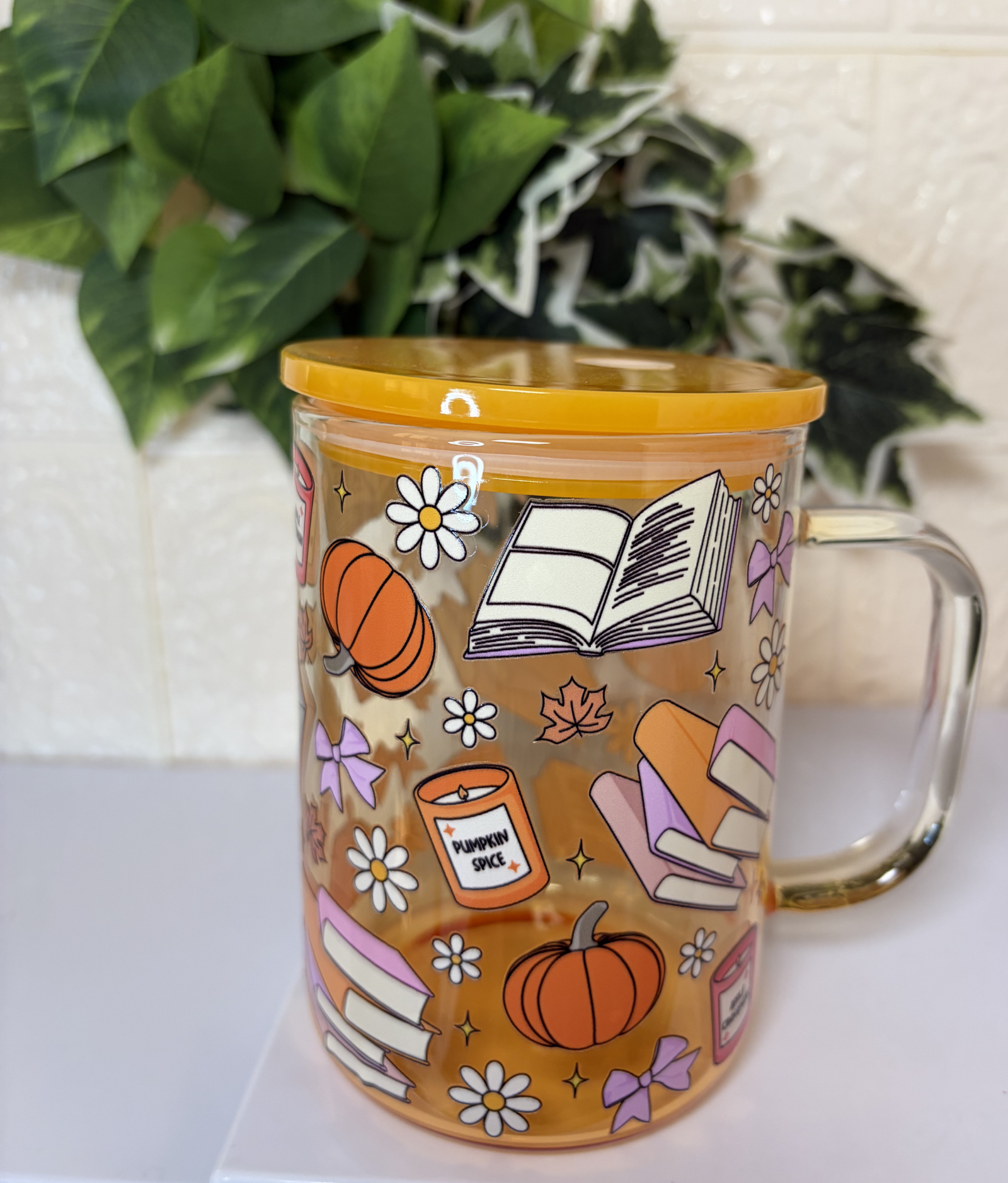 كوب زجاجي للمشروبات الباردة لون برتقالي